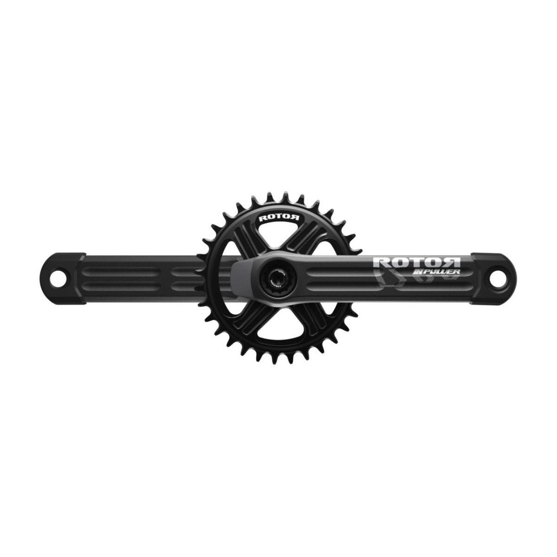 ROTOR INpower MTB DM Crankset. Lightness and accurate crankset that includes a power meter inside the spindle, measuring the power exerted on the left leg.