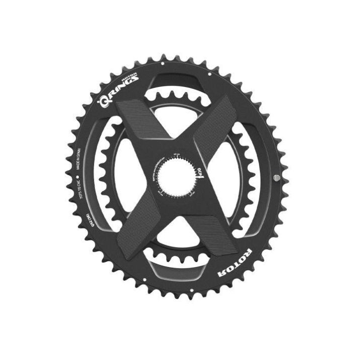 ROTOR Oval QRINGS 2X DM 11s. This chainrings are designed to maximize pedaling efficiency in 11-speed drivetrains. Machined from a single block of 7075 T6 aluminum, they combine lightweight construction with outstanding stiffness and durability. They are ideal for road, triathlon, gravel, and time trial riders seeking improved performance on every ride.