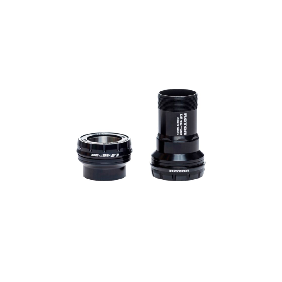 ROTOR UBB4630 PF30 BB Steel. You, or more specifically, your choice of frame, motivated us to address challenges related to bottom bracket installation and durability – thank you. We embraced the task to improve upon so-called bottom bracket standards to give you the UBB4630. Crafted from 7000 series aluminum alloy, the UBB4630 uses a threaded sleeve to lock both cups in place – without having all the locking effort rely on the press fit shell, thus providing a uniform spin and avoiding undesired noises. The flush fitting in the press fit region prevents bearing overload and also improves bearing alignment for a longer bearing life. The external bearing location affords a smoother spin and increased BB shell stiffness for PF30 and BBright standards. The internal sleeve also prevents cable guides from rubbing against rotating parts.